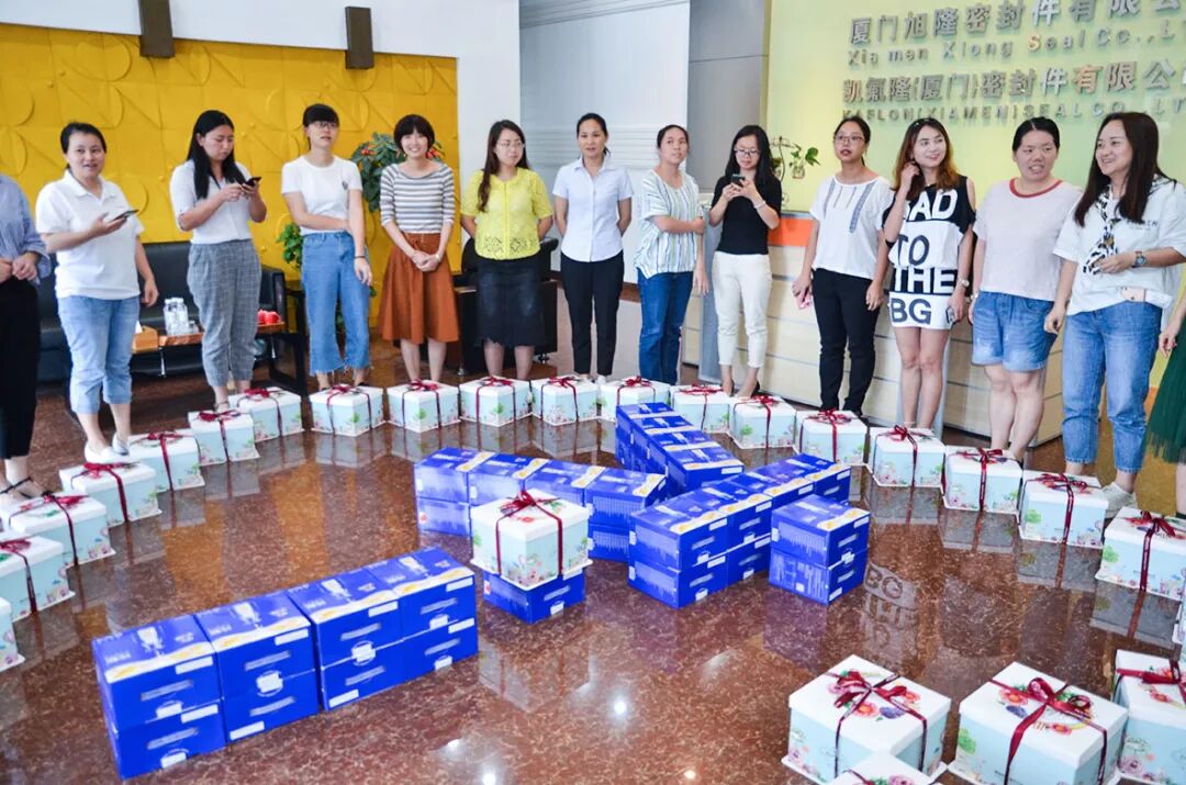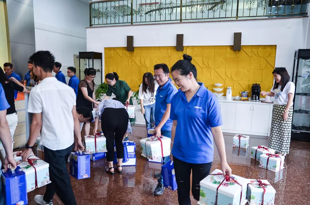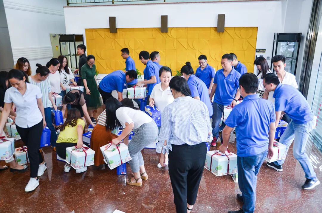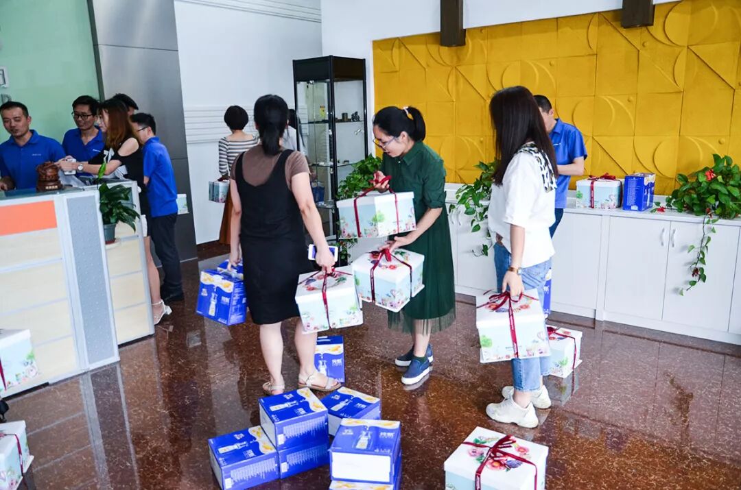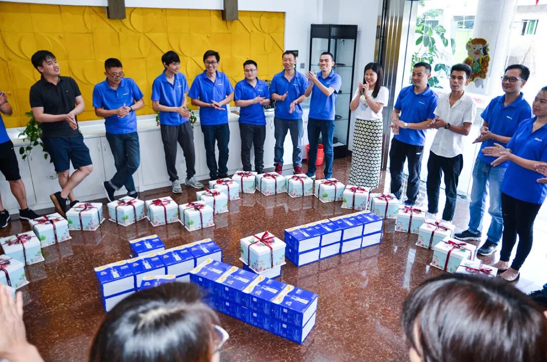 公司礼物发放现场,用蛋糕和酸奶摆成的“六一”,带给旭隆的小朋友们“酸酸甜甜的爱”!
