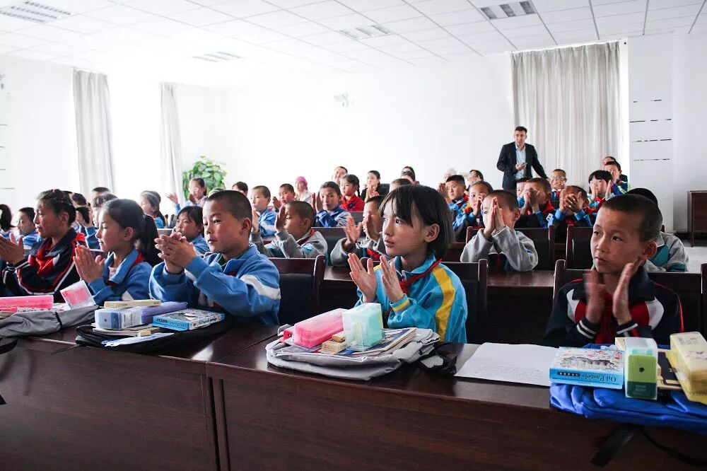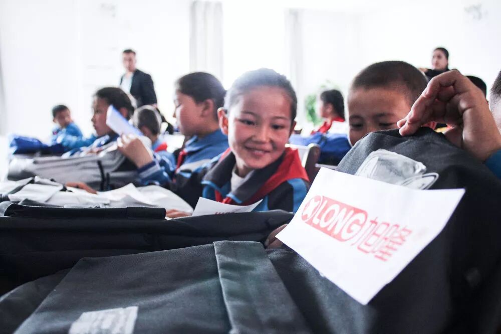 旭隆新疆团队的成员带着精美的书包和文具,来到新疆“希望小学”,给孩子们送上节日的祝福!
