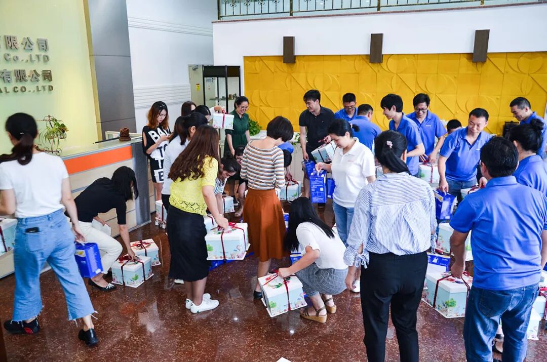 大伙儿沿着“爱心”站成排,喜悦之情溢于言表,纷纷发表祝福,感谢公司对小朋友们的关爱!